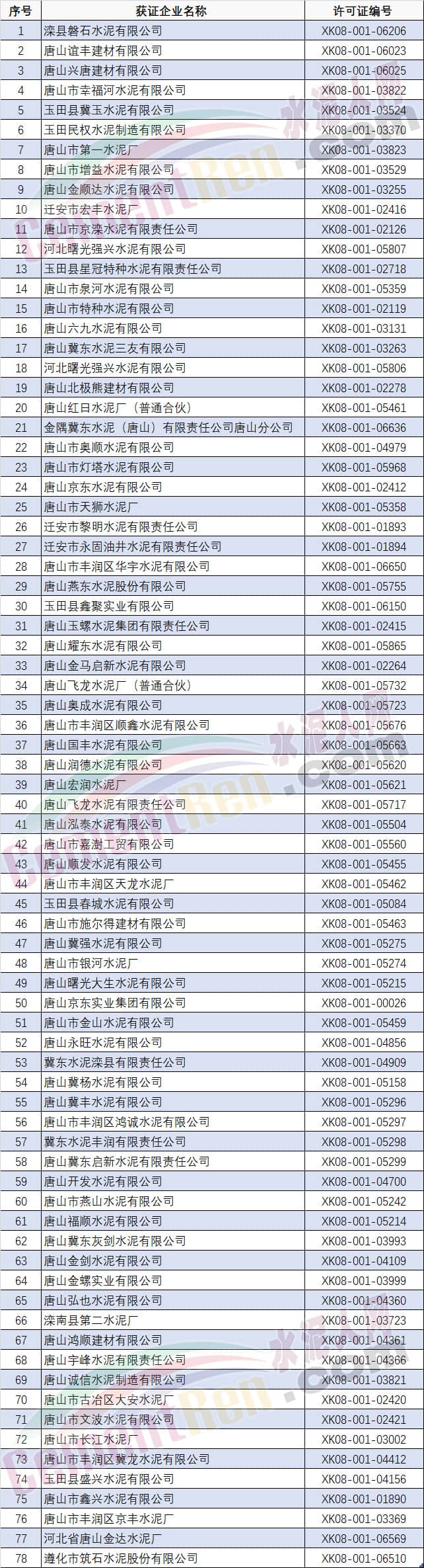附:唐山市部分水泥企業名單: