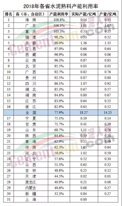 六年來,隨著化解過剩產能工作的不斷推進,全國水泥熟料行業產能利用率已經從2012年底的73.7%提高到2018年底的77.9%,水泥行業產能過剩問題得到初步緩解。值得關注的是,目前國內水泥產能利用率呈現明顯的南高北低態勢。一方面,北方多數省份的產能利用率依然沒能達到全國平均水平,新疆、黑龍江、內蒙古等省份甚至低于50%;另一方面,南方大部分省份的產能利用率都保持在90%以上,區域性、結構性矛盾仍十分突出。