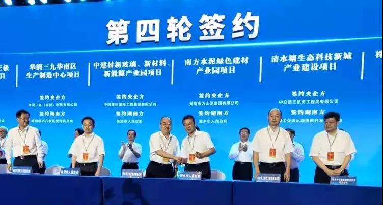 水泥人網消息,6月27日下午,2019湖南與央企對接合作大會在長沙舉行。湘鄉市委副書記、市長周俊文出席第四輪簽約儀式,并代表湘鄉市人民政府與湖南南方水泥集團有限公司簽訂南方水泥綠色建材產業園項目。