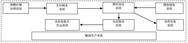 a) 生產系統或生產線:原料預處理、生料制備、熟料燒成、水泥制成、包(散)裝;