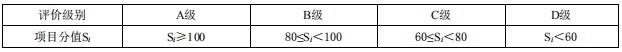 依據評價項目得分值,對評價項目得出A、B、C、D的定性評價結論。評價分級判定按照表6執行。