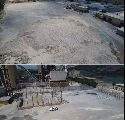 7月2日,記者前去調查核實。記者用無人航拍機拍攝在獅頭水泥廠看到,水泥廠廠區地面沒有噴水,風刮起的粉塵彌散在廠區周圍,里面還有許多煤泥也沒有防塵設備,最為嚴重的是把美麗的山體嚴重破壞。