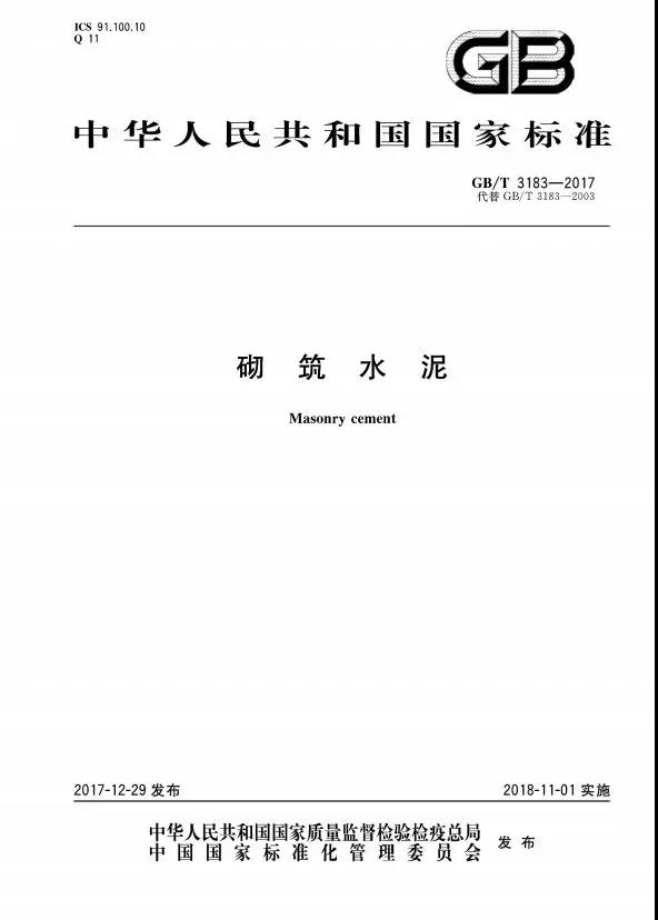 GB/T3183-2017《砌筑水泥》國家標(biāo)準(zhǔn)實(shí)施日期為2018年11月1日,從其內(nèi)容來看,更象是全面取消GB175標(biāo)準(zhǔn)中的32.5標(biāo)號“打補(bǔ)丁”。