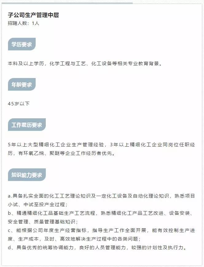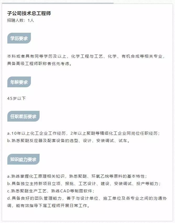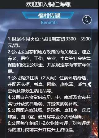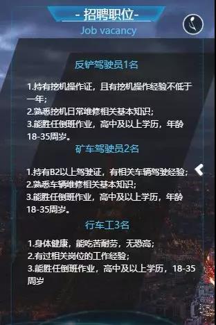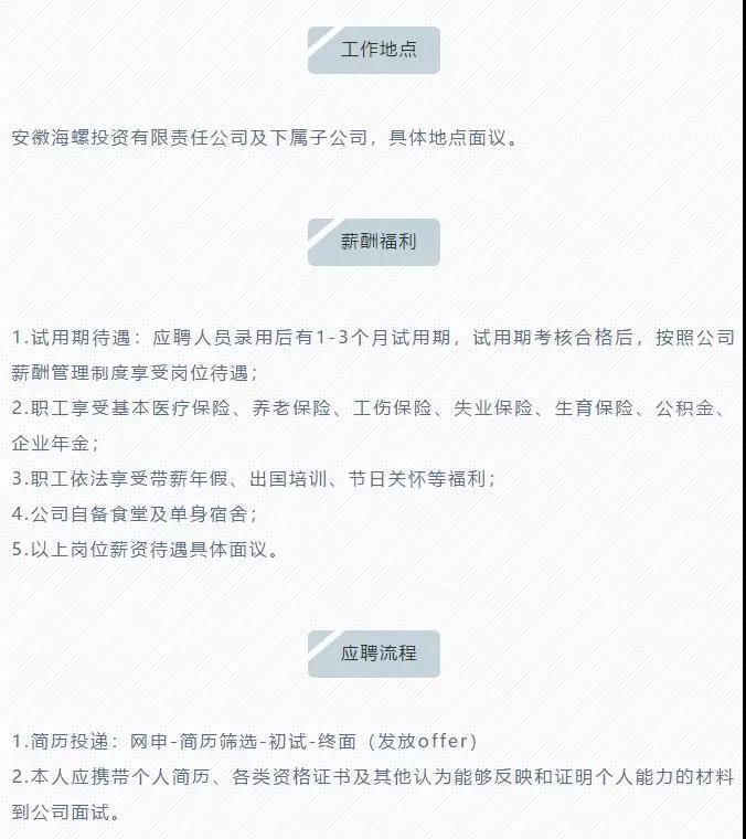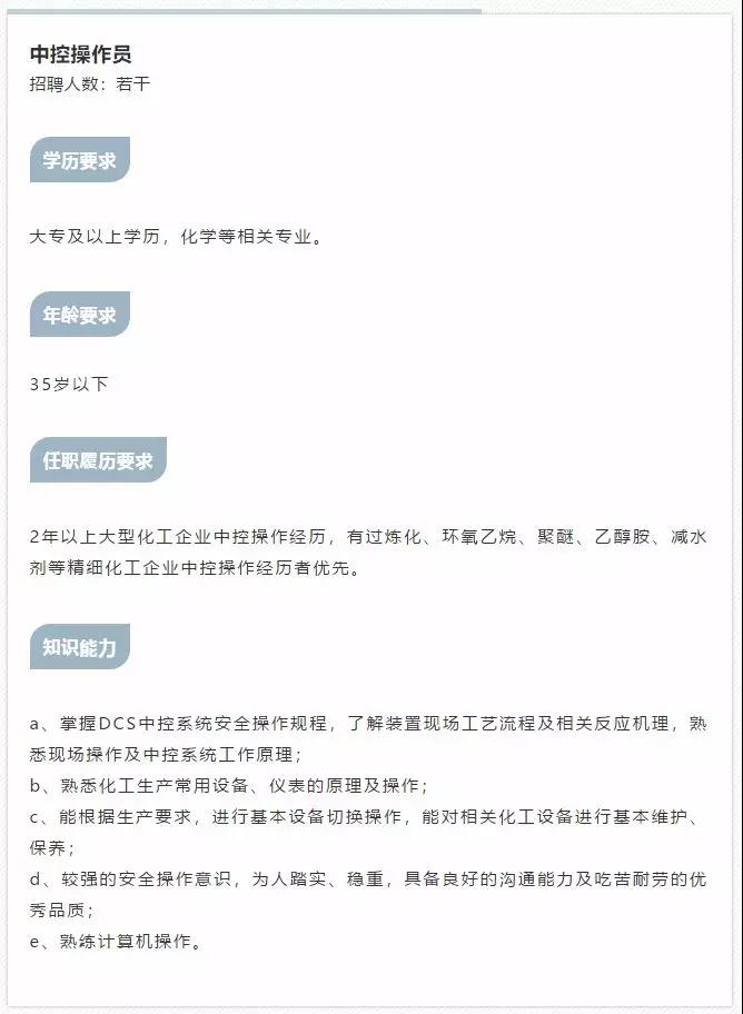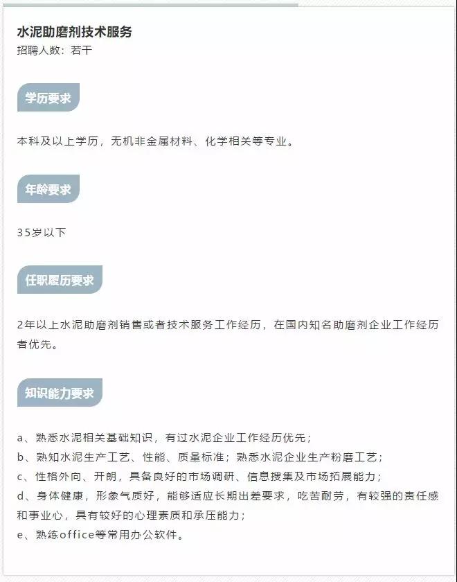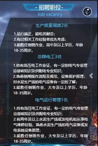 要求:性別不限,專科以上學歷。安全環保類專業、機械類專業、電氣類專業、無機非金屬材料專業、管理類專業均可,能吃苦耐勞。有工作經驗優先,年齡18-35歲。工資待遇:3000- 6000元/月。