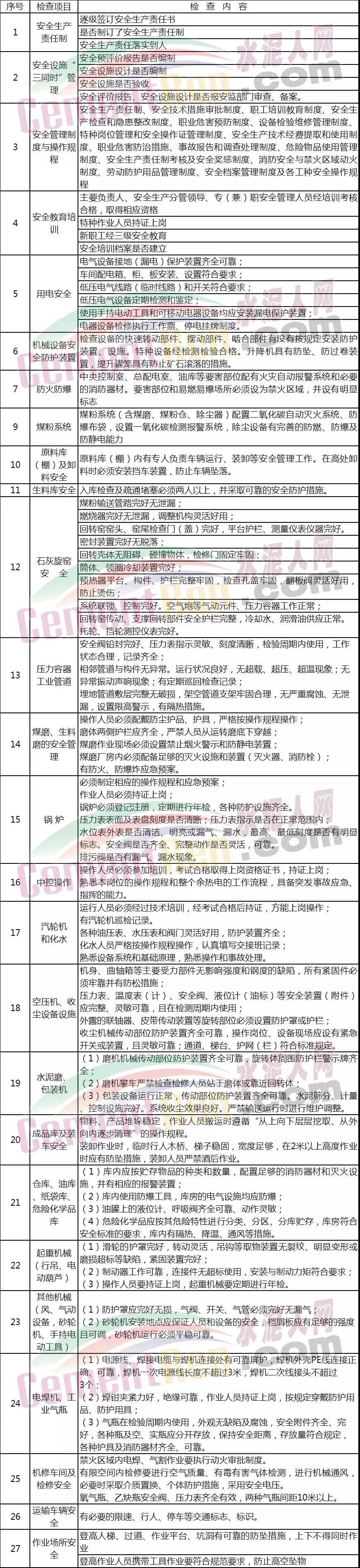 此次安全事故發(fā)生之后,或?qū)⒁鹦乱惠喨珖踩髾z查,危化、水泥、鋼鐵等領(lǐng)域依然是檢查重點領(lǐng)域。下面我們一起來了解一下水泥企業(yè)安全檢查查什么?