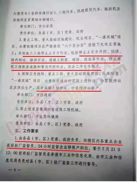 處置污泥的企業(yè)按照核定的最低負(fù)荷生產(chǎn),保障重點(diǎn)工程、“一港雙城”項(xiàng)目、水曹鐵路的水泥企業(yè)定向生產(chǎn)供應(yīng),其余企業(yè)停產(chǎn);他行業(yè)。全市粉磨站、磚瓦窯、鋼鍬等企業(yè),在執(zhí)行7月份管控措施基礎(chǔ)上7月26、27、28日全部停產(chǎn)。