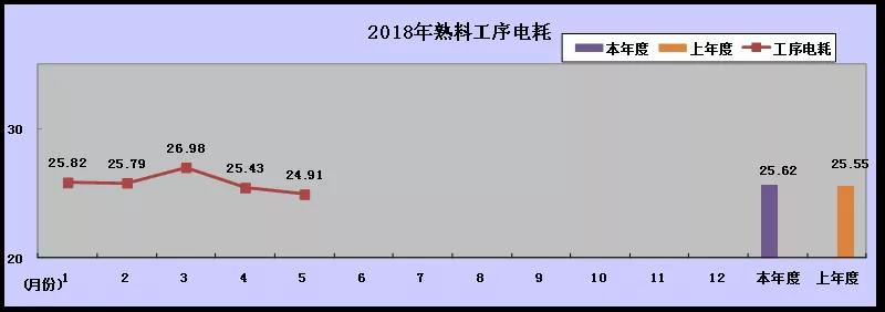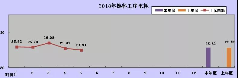 上圖為2018年1-5月熟料工序電耗趨勢圖。5月4日計劃停窯更換燃燒器,熟料工序電耗24.91kw.h/t,比之前的25.5kw.h/t下降約0.6kw.h/t。主要原因:一、新燃燒器采用了高風壓低風量技術;二、新燃燒器火焰鋼性足,熟料燒結好,熟料顆粒均勻,篦冷機風機群可以降風,電耗有所下降。
