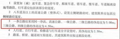 據水泥人網了解,根據《公路工程技術標準》3.6.1條規定:一條公路應采用同一凈高。高速公路、一級公路、二級公路的凈高應為5.00m;三級公路、四級公路的凈高應為4.50m。最低等級的公路也要限高4.5米。規定中強調了“凈高”,也就是說,在這個高度以下不允許有任何障礙物,要確保規定高度內的空間完全暢通!即便是限高架也不行!