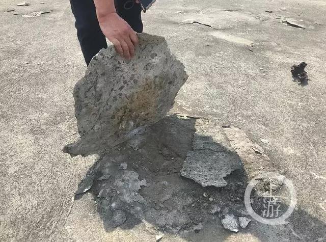 掰開的混凝土塊中還能看到生銹的鋼渣痕跡