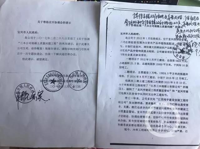 多次協商未果 住建局成被告4年里,周順奇一次又一次向宜興市委市政府、宜興市住建局反映,尋找鑒定和處理結果,但收效甚微,期間隨著爆點的增多,原本的冷庫也已經成為危樓。據周順奇提供的自2016年至2017年多份政府批文顯示,宜興市人民政府曾多次要求宜興市住建局配合徐舍鎮妥善處理好西郊農副產品交易市場因混凝土質量問題停工問題。但周順奇稱:“住建部門多次要求我們做鑒定,交了大筆的鑒定費后,只是說混凝土存在不穩定因素,但并沒有說明該建筑是否應當被拆除或可以改為他用,也沒有說明混凝土企業是否應承擔相應責任。”由江蘇省東南建設工程安全鑒定有限公司出具的兩份鑒定報告也證實了周順奇的說法。事故發生后,宜興市住建局始終未追究宜興市三木建材有限公司“生產銷售假冒偽劣產品”的責任。2017年8月,周順奇將宜興市人民政府、宜興市住建局告上法庭。請求無錫市中級人民法院依法認定宜興市人民政府、宜興市住建局對造成建設工程特大質量事故的處置嚴重失控,屬行政不作為;同時判令兩部門及時按照國務院關于《生產安全事故報告和調查處理條例》嚴格執行。“混凝土生產企業需要由經信委的立項,住建局的審批和環保局的環評報告,而且還要辦理銷售許可證,而我了解到宜興市三木建材有限公司的證件并不齊全。”周順奇說。據2018年1月16日無錫市中級人民法院庭審筆錄顯示,庭審中,對于周順奇的訴求請求,宜興市人民政府、宜興市住建局稱其均嚴格按照相關法律規章的規定,依法履行了各項職責,并不存在違法情形。同時,宜興市住建局表示,目前事故原因和事故經過已很清楚,但造成的損失無法確認。后經法院協調,2019年1月18日,宜興市人民政府向無錫市中級人民法院送達了協調函。關于周順奇一案,目前宜興市人民政府正在積極協調處理此事,要求暫停審限。