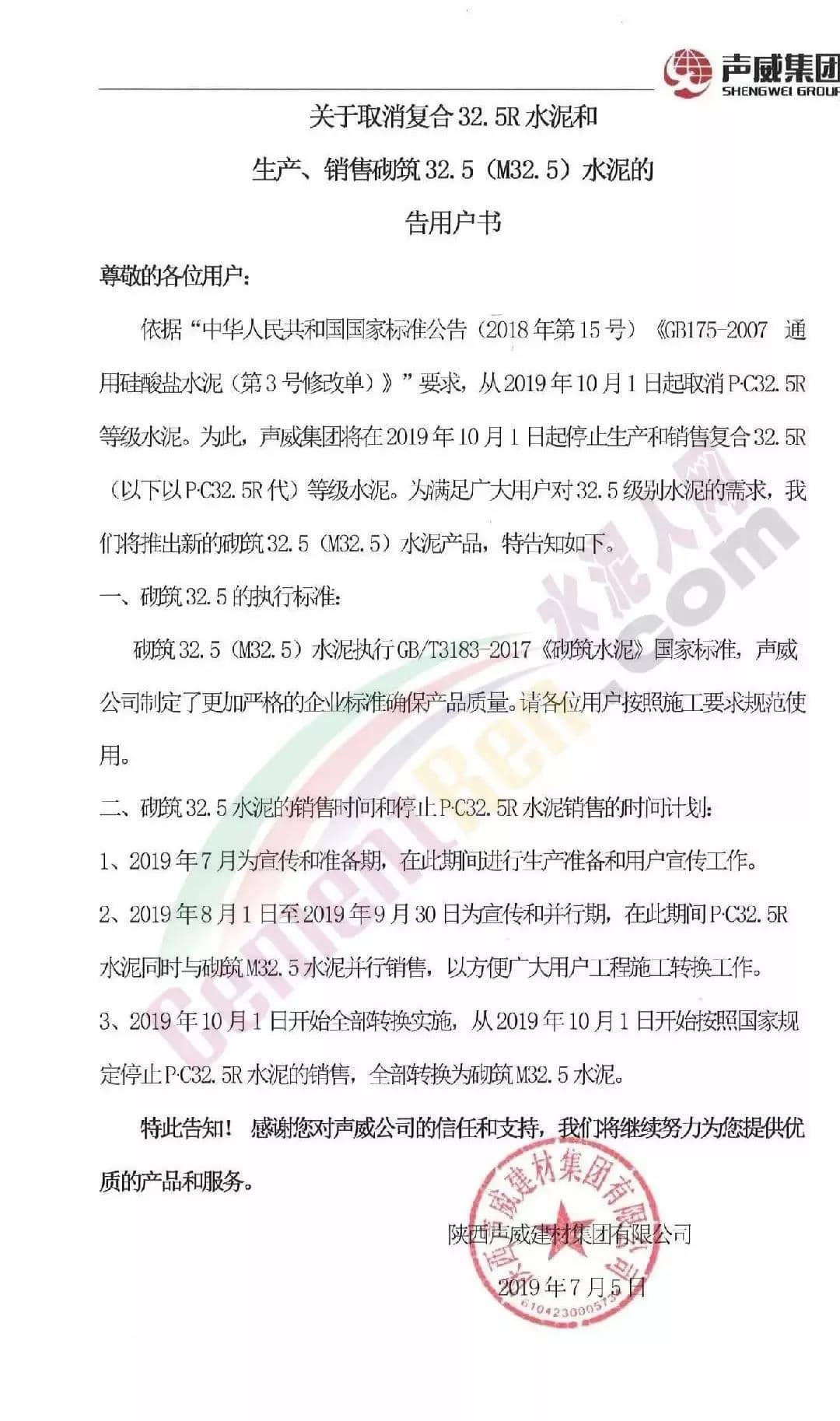 陜西聲威建材集團推出M32.5水泥當各集團熱熱鬧鬧推出新品的時候,水泥行業內針對于是否支持全面取消32.5標號水呢爭議不斷 ,是支持還是反對分歧比較大。對此,行業內各位專家紛紛發表觀點,眾說不一: