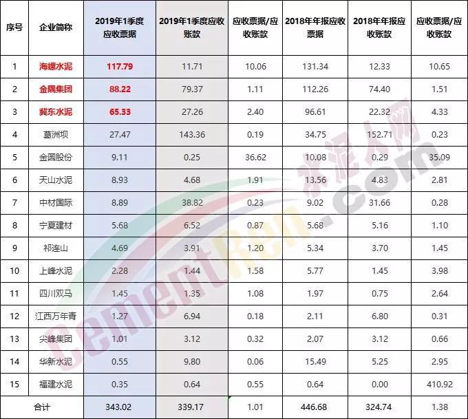 在資深金融分析師看來,出現銀行承兌匯票無法兌付的情況,只可能有兩種原因,一是說明金融機構的資金可能存在一定的流動性風險,二是說明向金融機構融資的企業出現了危機,無論哪種情況都需要引起警惕。銀行承兌匯票主要的風險是付款方存在的信用風險,融資人出了問題,這種情況下,金融機構寧愿自己違規也要避免更大損失,因此出現不償付的情況。 上述消息一經發出,不僅引起了鋼鐵行業的震動,水泥行業也議論紛紛。小編特將水泥行業上市公司1季度報和2018年年報數據中有關應收票據和應收賬款匯總如下:
