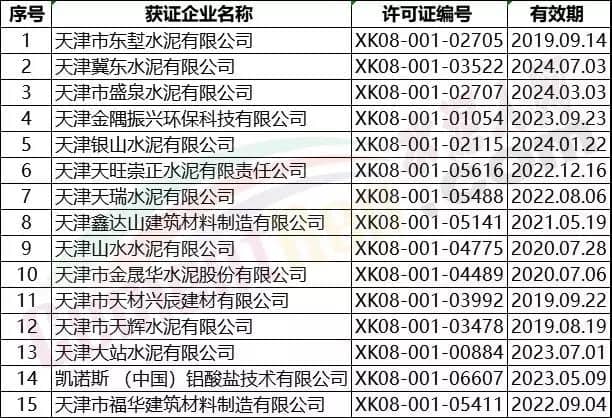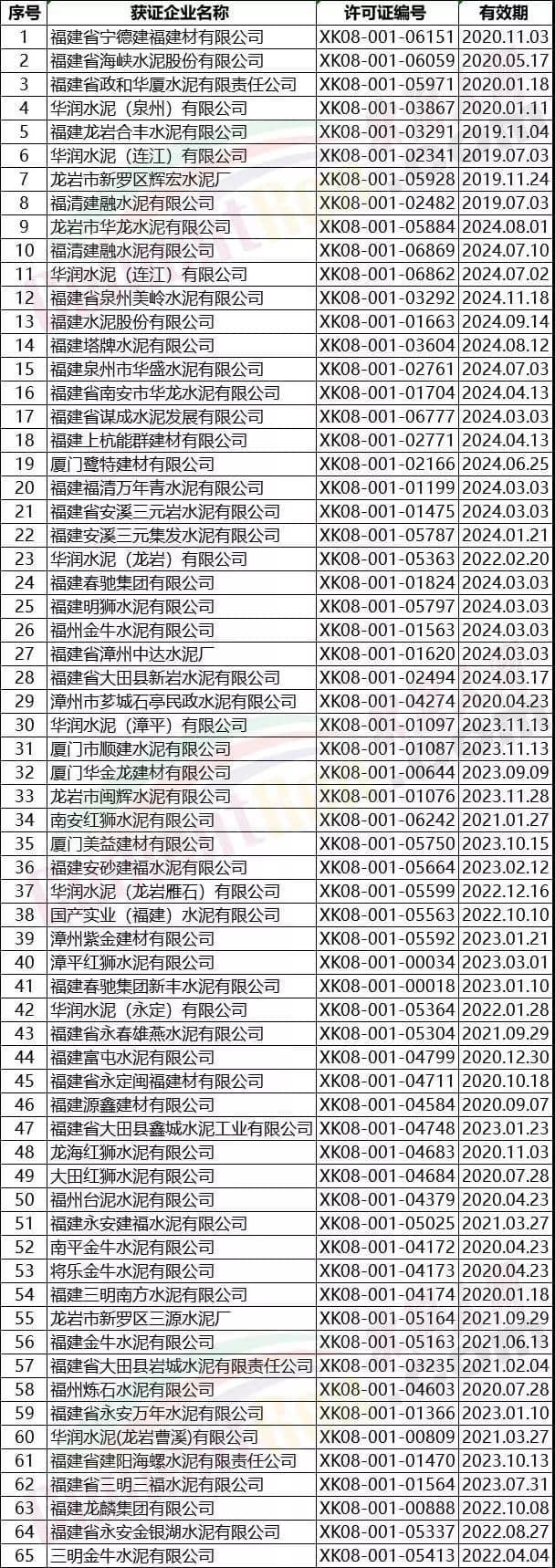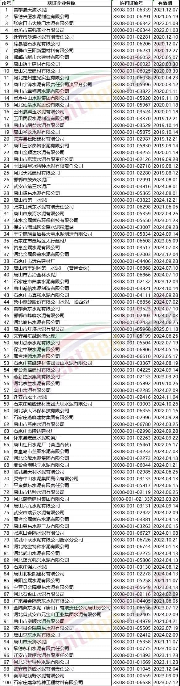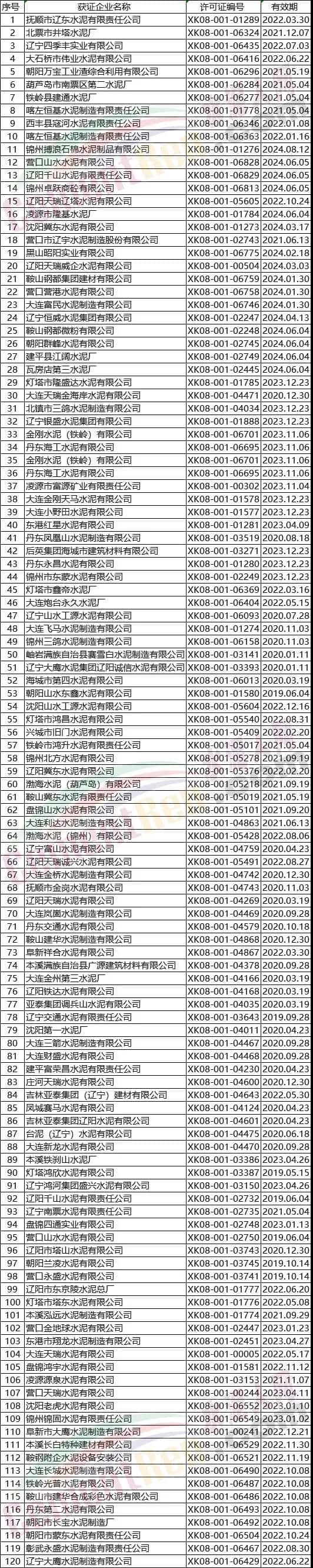 附:臺灣、福建、浙江、上海、江蘇、山東、河北、天津、遼寧水泥企業(yè)名單