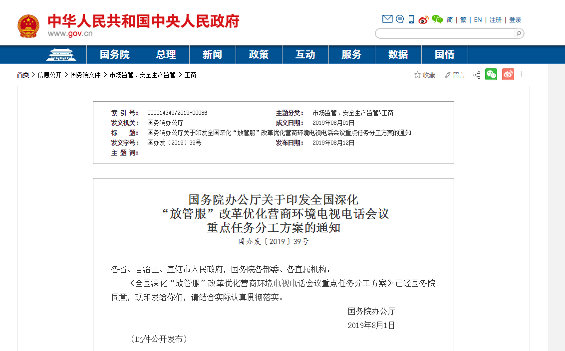 通知提出,黨中央、國務院高度重視深化“放管服”改革、優化營商環境工作,將繼續壓減中央和地方層面設定的行政許可事項。2019年內中央層面再取消下放一批行政許可證,對保留的許可證要逐項明確許可范圍、條件和環節等,能簡化的都要盡量簡化。
