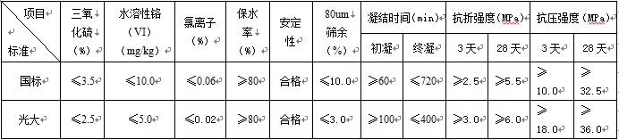 “凱城”牌P·C42.5水泥主要技術(shù)內(nèi)控指標與國標對比