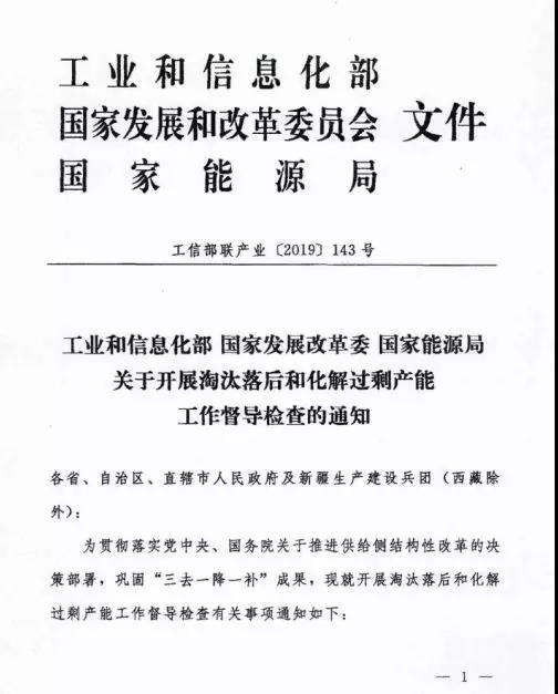根據馮飛常務副省長、高興夫副省長在《工業和信息化部 國 家發展改革委 國家能源局關于開展淘汰落后和化解過剩產能工 作督導檢查的通知》(工信部聯產業〔2019〕143 號)(以下簡稱 《通知》)上的批示要求,為做好國家督導檢查準備工作,現就 有關事項通知如下: