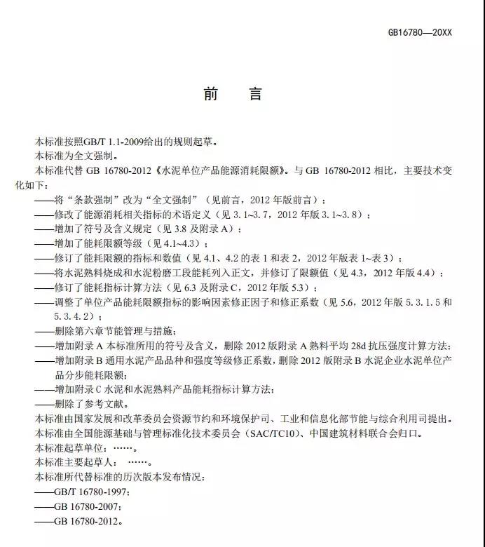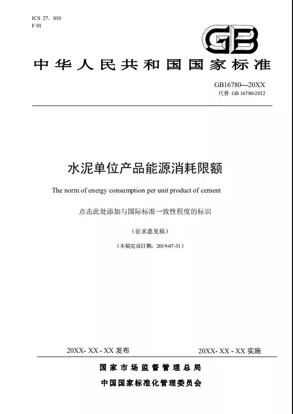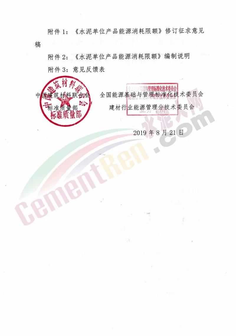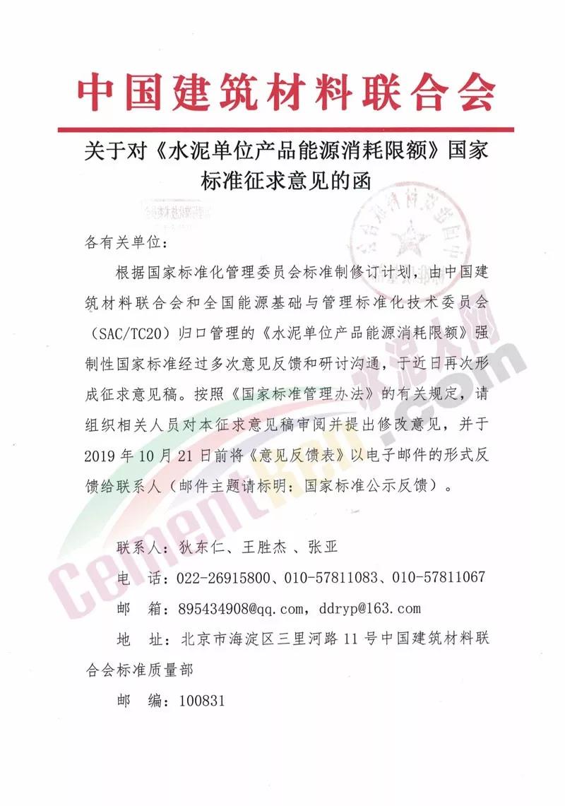日前,來源:中國建筑材料聯合會標準質量部 發布關于對《水泥單位產品能源消耗限額》國家標準征求意見的函天氣:根據國家標準化管理委員會標準制修訂計劃,由中國建筑材料聯合會和全國能源基礎與管理標準化技術委員會歸口管理的《水泥單位產品能源消耗限額》強制性國家標準經過多次意見反饋和研討溝通,于近日再次形成征求意見稿。