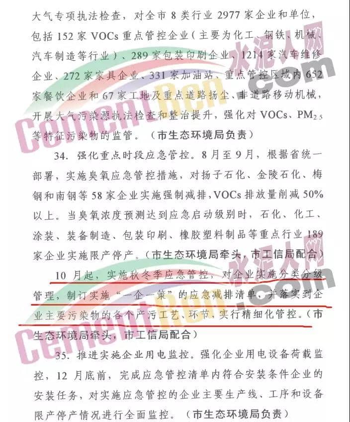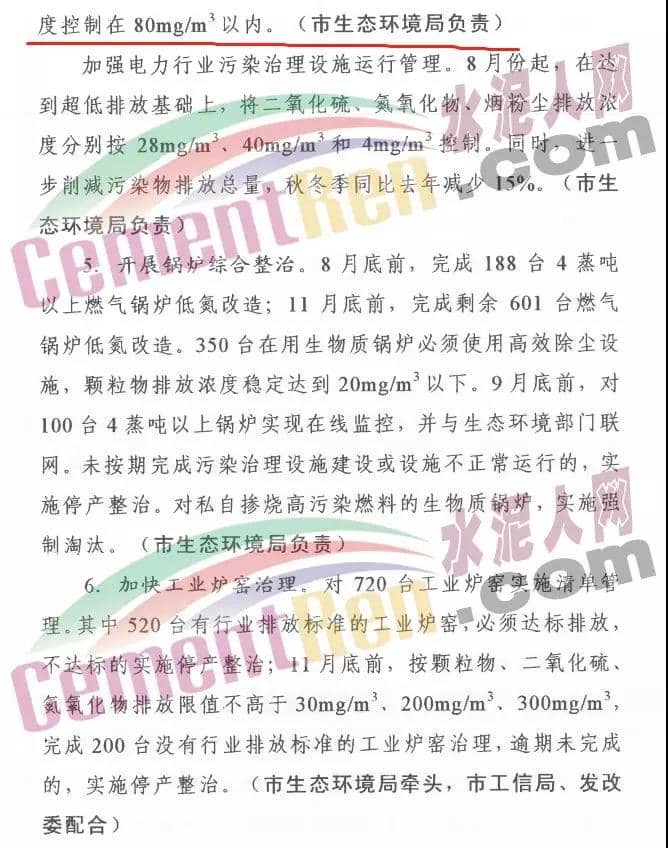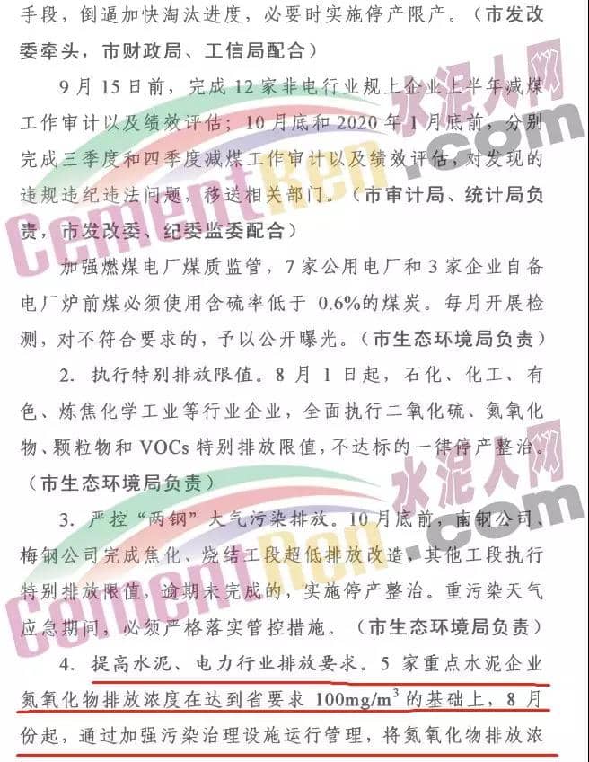 提高水泥、電力行業的排放要求,5家水泥企業氮氧化物排放濃度在達到省要求100毫克/立方米的基礎上,8月份起,通過加強污染治理設施運行管理,將氮氧化物排放濃度控制在80毫克/立方米以來。由南京市生態環境局負責。