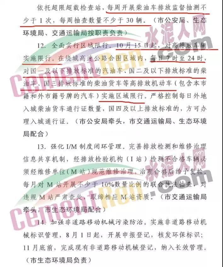 實施水泥行業減量錯峰生產。對水泥行業實行負面清單管理,不得新增產能,對現有水泥產能進行壓減退出。8月15日起,采取綜合措施,倒逼部分水泥企業退出;對暫時保留企業,從9月份起實施錯峰生產,按要求限產50%以上(以用電量核算)或階段性停產。(市工信局牽頭,市發改委、公安局、規劃資源局、商務局配合,棲霞區、江寧區、浦口區、溧水區、南京經開發區負責)