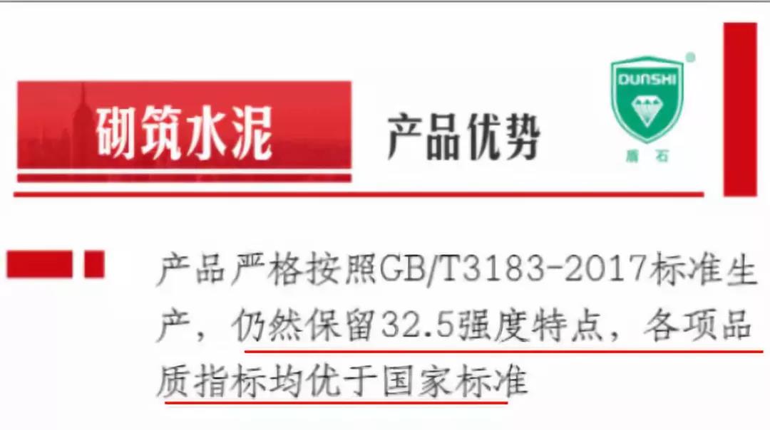 盾石砌筑水泥產品優勢介紹稱:產品嚴格按照砌筑水泥國家標準生產,仍然保留32.5強度特點,各項品質指標均優于國家標準;初凝時間適中,粘接性好,不裂磚,不返砂,耐久性好,便于施工方案確定和工程質量控制;水泥強度穩定 ,后期強度增進率高,利用工程設計和優良工程建設等。