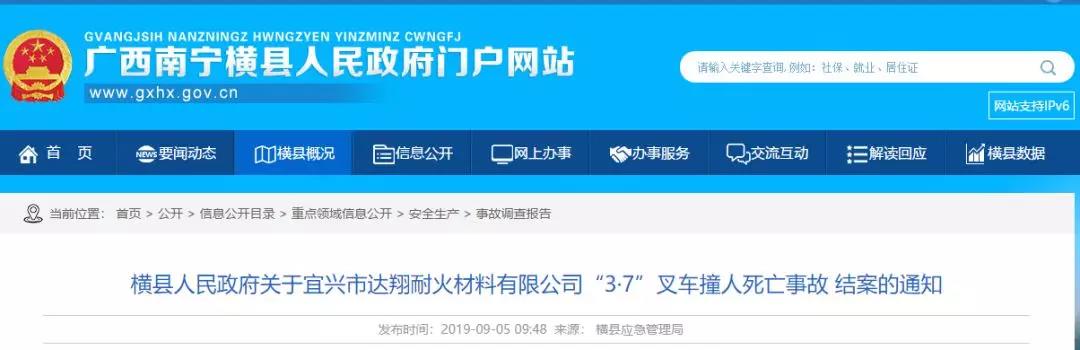 宜興市達(dá)翔耐火材料有限公司,管理制度執(zhí)行不到位,管理人員對(duì)施工現(xiàn)場(chǎng)的安全管理不到位,對(duì)施工現(xiàn)場(chǎng)作業(yè)過程缺乏有效監(jiān)督管理,施工作業(yè)違章指揮違章作業(yè)得不到及時(shí)發(fā)現(xiàn)和制止。該行為違反《中華人民共和國安全生產(chǎn)法》第四十一條“生產(chǎn)經(jīng)營單位應(yīng)當(dāng)教育和督促從業(yè)人員嚴(yán)格執(zhí)行本單位的安全生產(chǎn)制度和安全操作規(guī)程;并向從業(yè)人員如實(shí)告知作業(yè)場(chǎng)所和工作崗位存在的危險(xiǎn)因素、防范措施以及事故應(yīng)急措施”的有關(guān)規(guī)定,對(duì)事故發(fā)生負(fù)有管理不善的責(zé)任,由橫縣應(yīng)急管理局依照《中華人民共和國安全生產(chǎn)法》第一百零九條第一款“發(fā)生一般事故的,處二十萬元以上五十萬元以下的罰款”進(jìn)行處理。