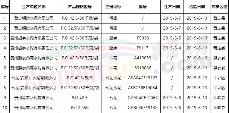 4批次產品不合格。承檢機構為河南省水泥質量監督檢驗中心。
