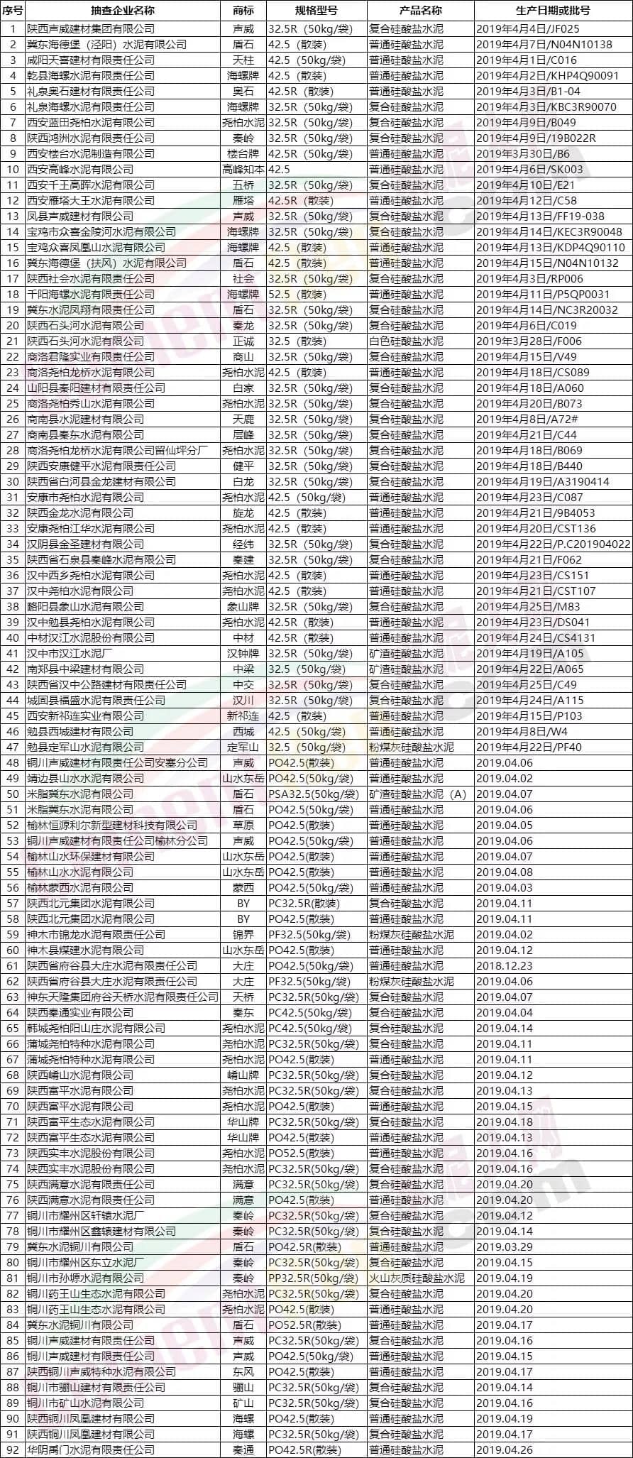 水泥樣品在西安、寶雞、咸陽、銅川、渭南等地區的生產領域中抽取,共抽查生產企業79家,抽取樣品92批次,經檢驗,合格樣品92批次,樣品合格率為100%。