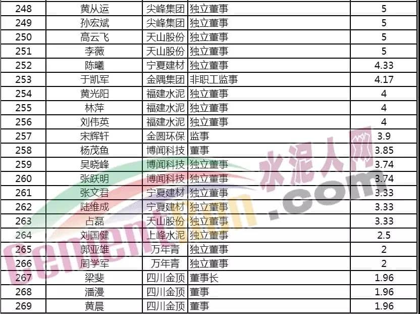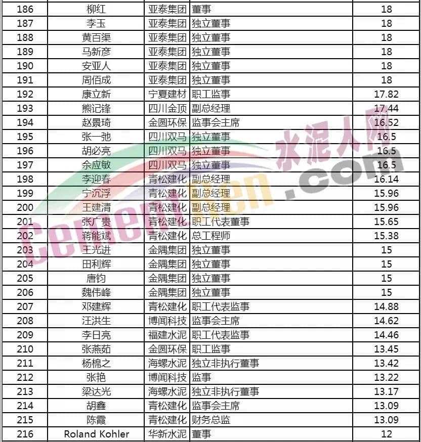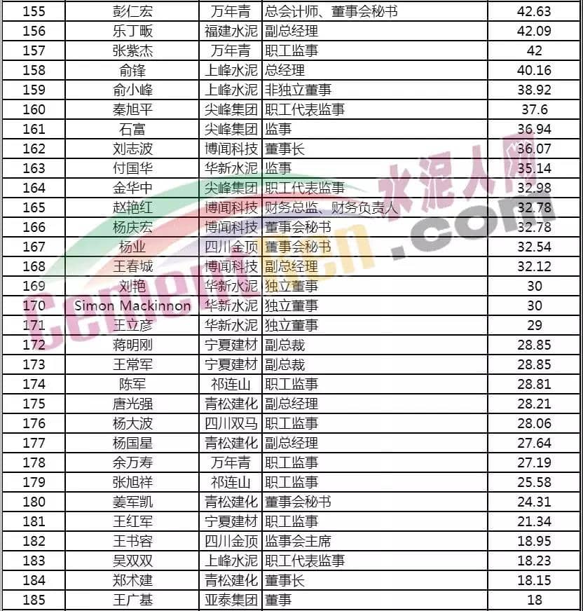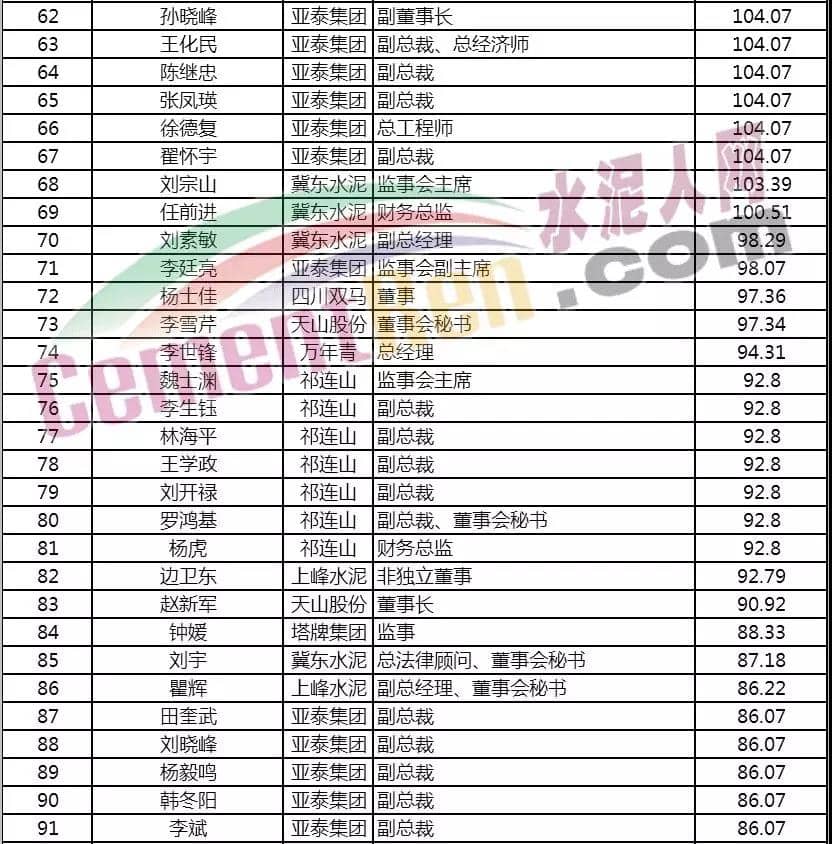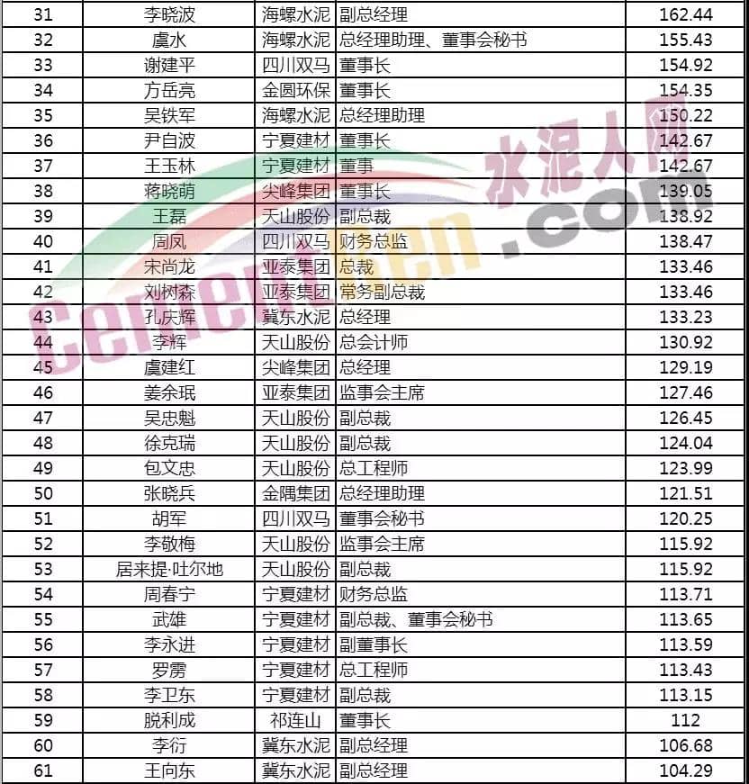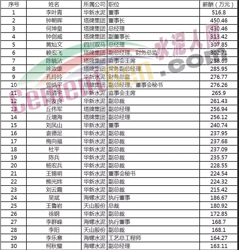 近期,各大水泥企業上市公司陸續發布2019年半年報,上半年水泥企業賺得盆滿缽滿。而各大水泥集團企業的一把手和管理層的工資收入也同期公布出來。