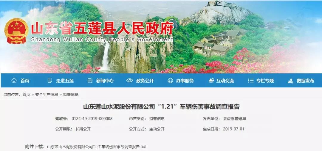今年7月,山東省五蓮縣人民政府官網發布了關于此次事故的調報告。報告全文如下: