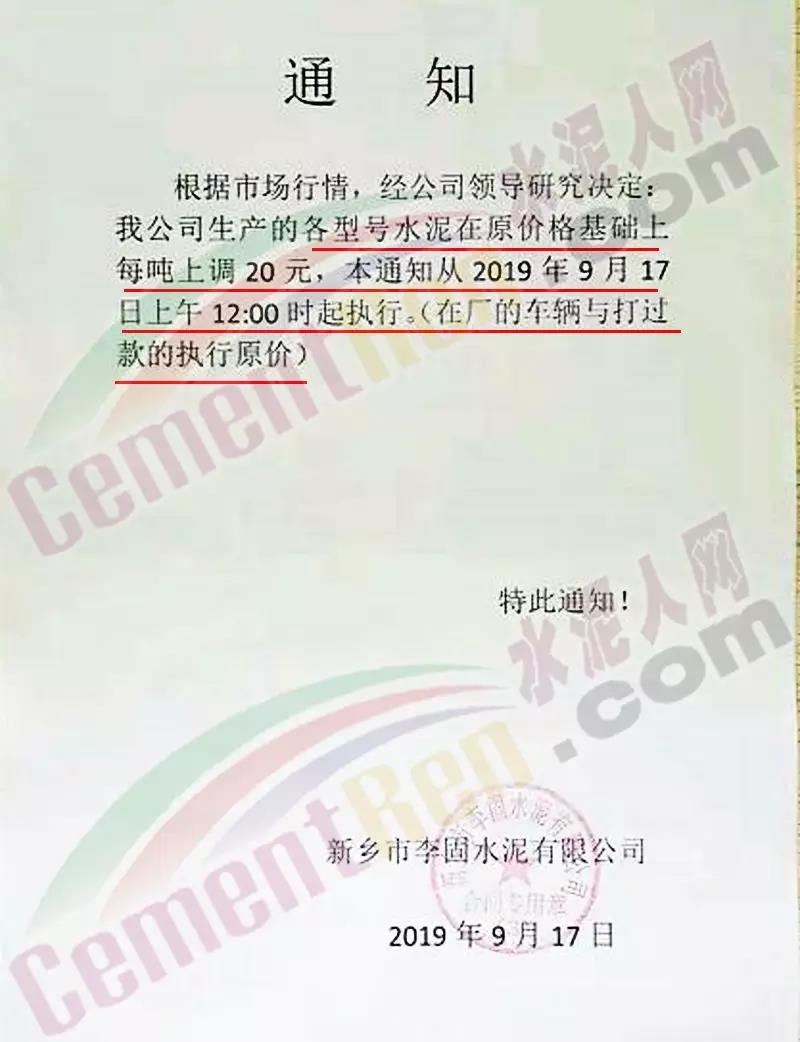 水泥人網消息:日前,崇左紅獅水泥銷售科通知:自今日(9月19日)上午8時起對銷往廣東珠三角、湛江區域區域所有散裝水泥上調20元/噸。