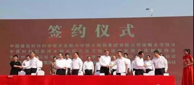 四份合作協議:中國建筑材料科學研究總院與中鐵十四局集團有限公司戰略合作協議;中建材科創新技術研究院與浙江創業投資集團合作框架協議;