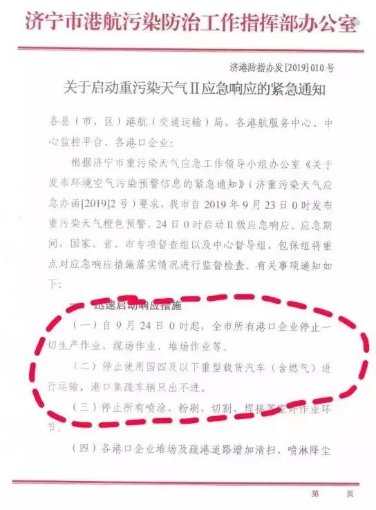 據水泥人網了解,近期北京、天津、河南、河北、山東、山西、江蘇、安徽均發布了橙色及以上重污染天氣預警。要求區域內相關企業單位停工、停產、停運,同時要求相關港口停止作業。山東省多家港口企業停止作業,港口集疏車輛只進不出。自9月24日起,濟寧市所有港口企業停止一切生產作業、煤場作業、堆場作業,同時停止使用國四及以下重型載貨汽車(含燃氣)進行運輸,港口集疏車輛只進不出。