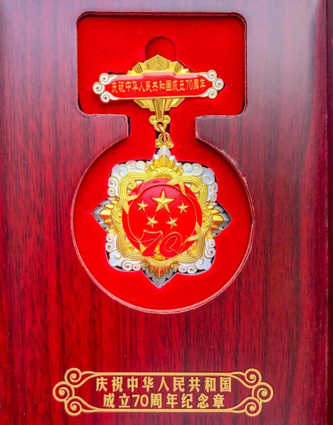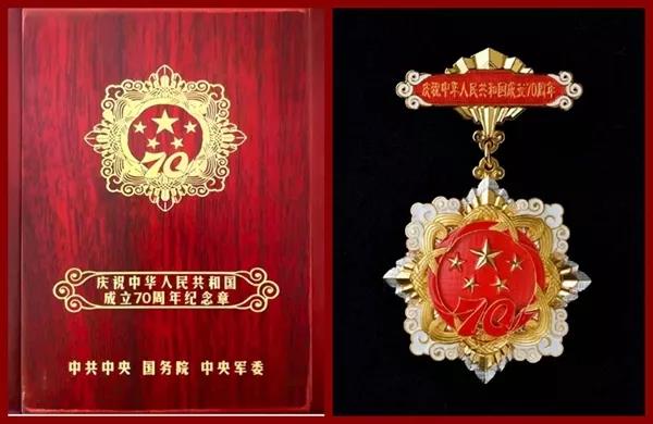 由中共中央、國務(wù)院、中央軍委頒發(fā)的“慶祝中華人民共和國成立70周年”紀(jì)念章,是新中國成立70周年系列慶祝活動的重要組成部分,旨在表彰中華人民共和國成立前參加革命工作和健在的老戰(zhàn)士老同志、中華人民共和國成立后獲得國家級表彰獎勵及以上榮譽的人員、中華人民共和國成立后因參戰(zhàn)榮立一等功以上獎勵的軍隊人員,以及為中華人民共和國成立作出杰出貢獻的國際友人。