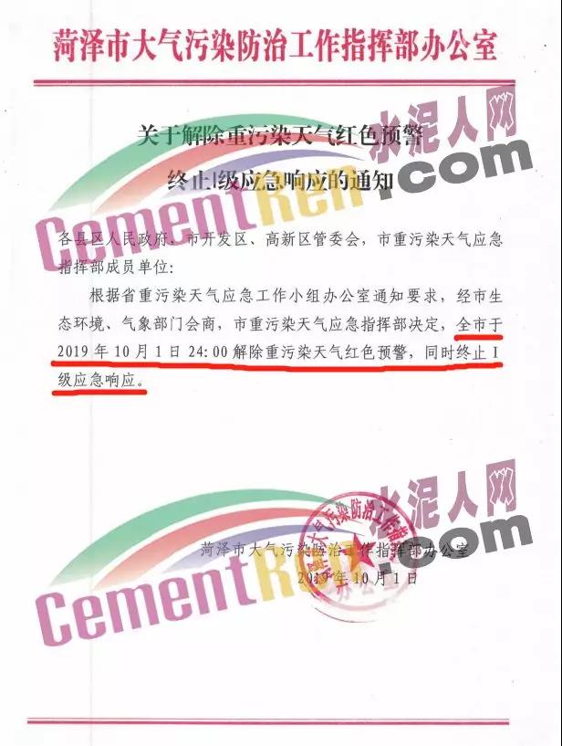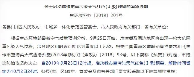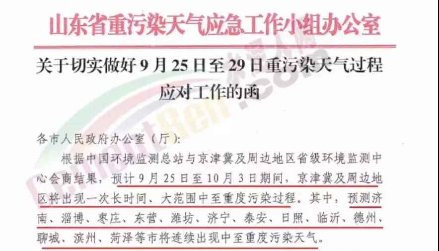 鄭州:自9月24日0時至10月2日24時啟動重污染天氣II級應(yīng)急響應(yīng); 焦作:自9月23日12時起,啟動重污染天氣紅色(Ⅰ級)預警,解除時間暫定為10月2日24時。 除山東省菏澤市之外,山東省濟南、淄博、棗莊、東莞、濰坊、濟寧、泰安、日照、臨沂、德州、聊城、濱州、菏澤等市也將于10月3日解除重污染天氣預警,各大工地、企業(yè)也將陸續(xù)復產(chǎn)。