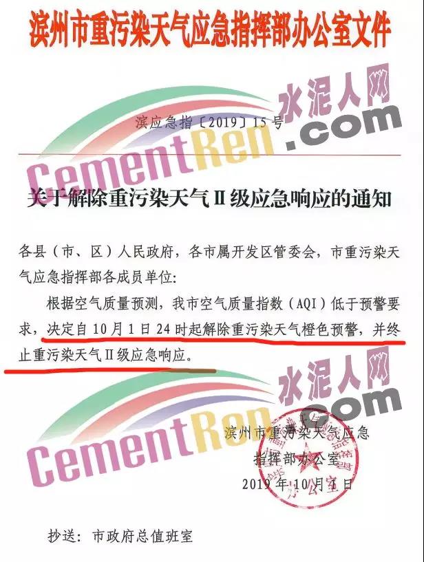 同日,濱州市重污染天氣應(yīng)急指揮部辦公室發(fā)布《關(guān)于解除重污染天氣II級應(yīng)急響應(yīng)的通知》稱,根據(jù)空氣質(zhì)量預測,濱州市空氣質(zhì)量指數(shù)低于預警要求,決定自10月1日24日時起解除重污染天氣橙色預警,并終止重污染天氣II級應(yīng)急響應(yīng)。