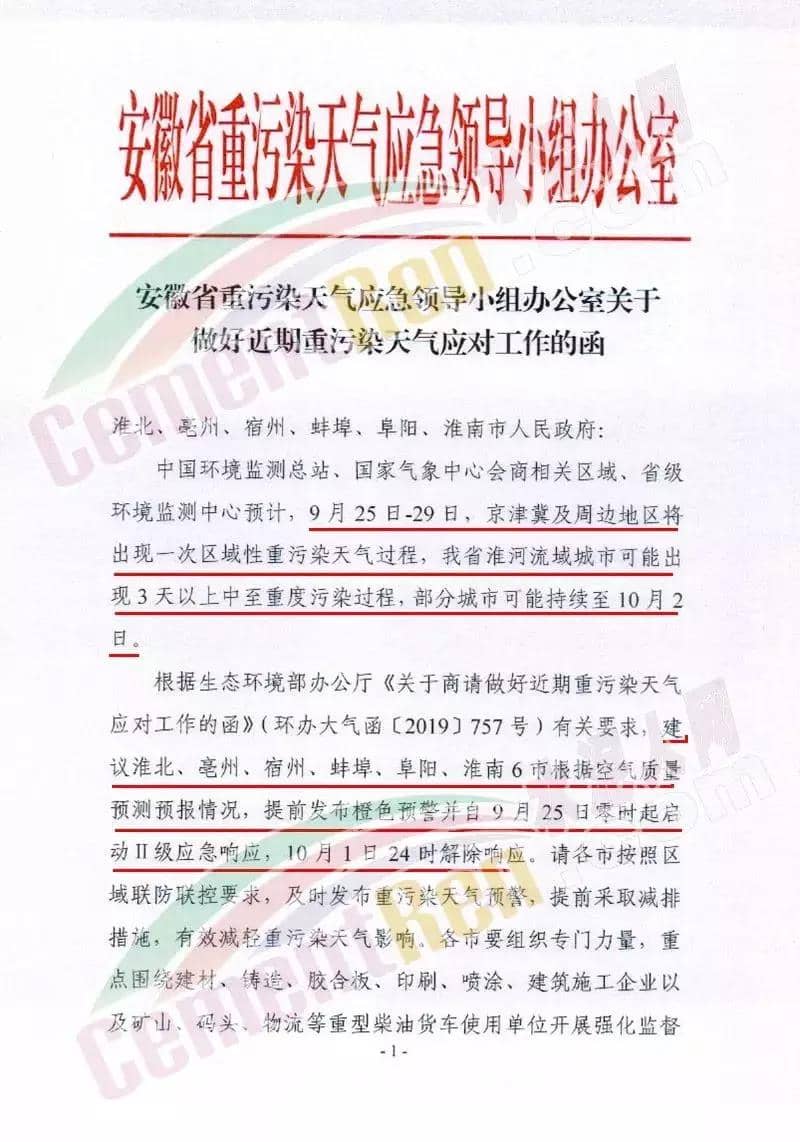 除此之外,安徽省重污染天氣應(yīng)急領(lǐng)導小組辦公室關(guān)于做好近期重污染天氣應(yīng)對工作的函也明確指出,淮北、亳州、宿州、蚌埠、阜陽、淮南區(qū)域根據(jù)質(zhì)量預測預報情況,自10月1日24時起解除II級應(yīng)急響應(yīng)。