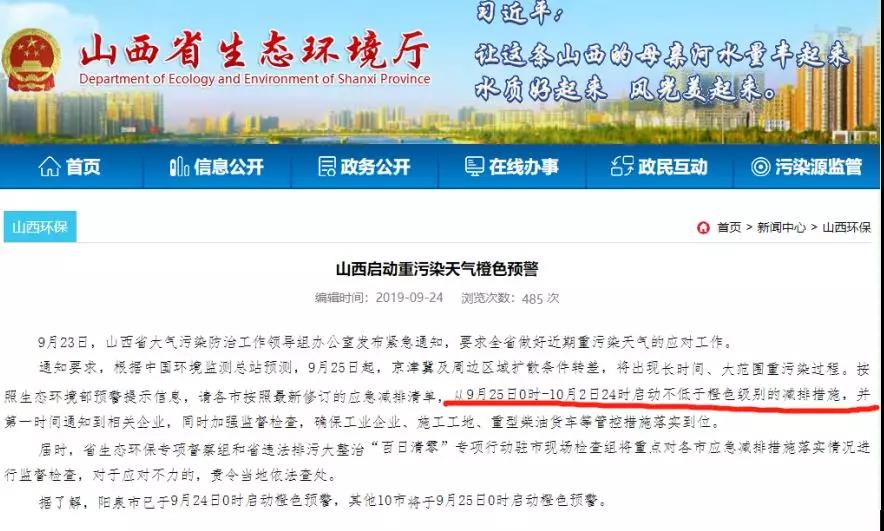 10月2日24日起,山西啟解除重污染天氣橙色預警,屆時,工地、企業(yè)、施工工地也即將恢復生產(chǎn)和施工。
