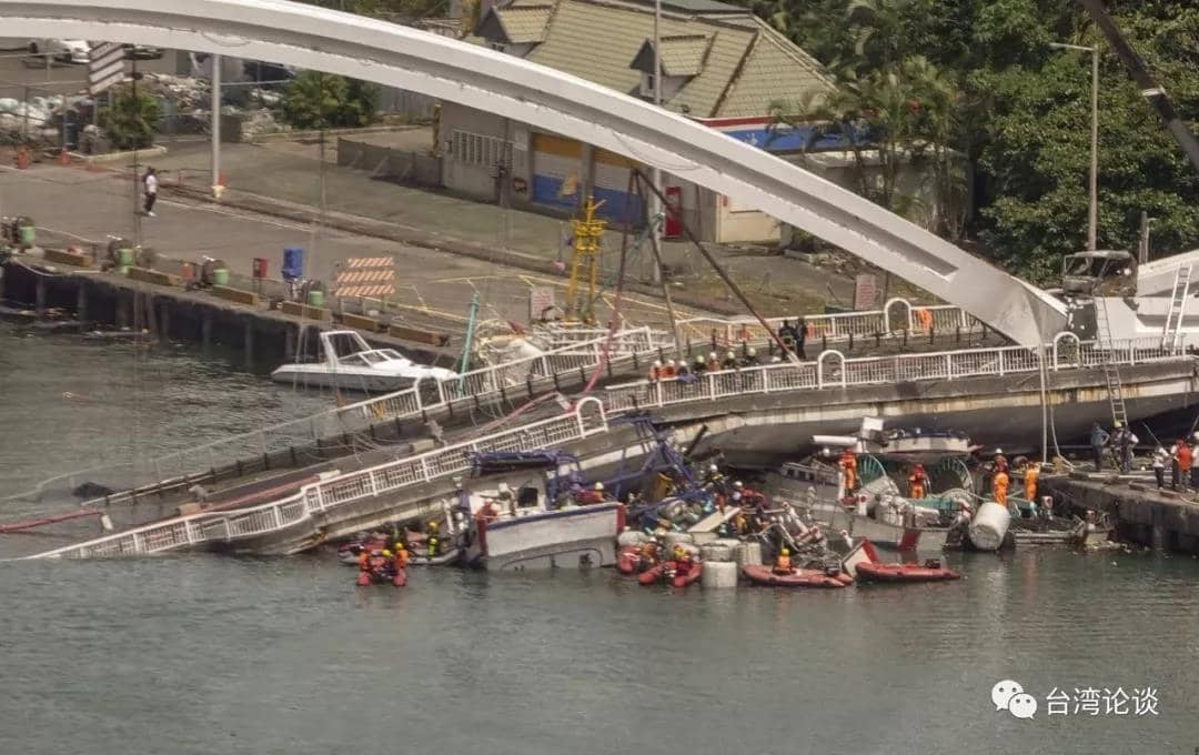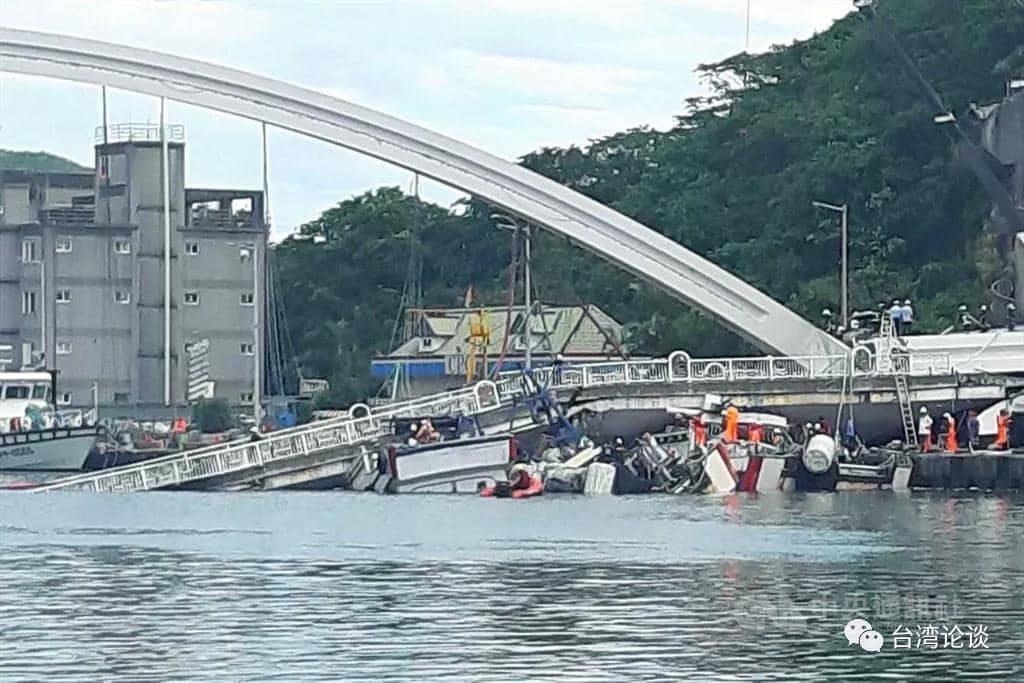 宜蘭南方澳大橋建于1999年,當地人懷疑該橋承載負荷太大,平常行人走在橋上時,只要車子經過,“都會搖晃得很厲害”。 Tsai Ing-wen已指示軍方全力搜救。