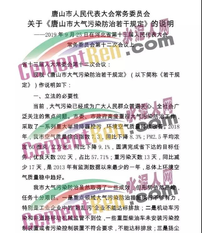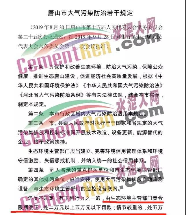 據(jù)水泥人網(wǎng)消息,近日,唐山市第十五屆人民代表大會常務(wù)委員會發(fā)布《公告》稱,《唐山市大氣污染防治若干規(guī)定》已于2019年8月30日唐山市第十五屆人民代表大會常務(wù)委員會第二十五次會議通過,經(jīng)河北省第十三屆人民代表大會常務(wù)委員會第十二次會議于2019年9月28日批準(zhǔn),自2019年11月1日起施行。 該規(guī)定稱:列入名錄的重點排污單位和市生態(tài)環(huán)境主管部門確定的其它排污單位,應(yīng)當(dāng)安裝、使用大氣污染排放自動監(jiān)測設(shè)備、與生態(tài)環(huán)境主管部門的監(jiān)控聯(lián)網(wǎng)。 違反本規(guī)定,有下列行為之一的,由生態(tài)環(huán)境主管部門 責(zé)令限期改正,處二萬元以上五萬元以下罰款;情節(jié)較重的,處五萬元以上十萬元以下罰款;情節(jié)嚴(yán)重的,處十萬以上二十萬以下罰款;拒不改正的,責(zé)令停產(chǎn)整治;構(gòu)成犯罪的,依法追究刑事責(zé)任: 一、未按照規(guī)定安裝、使用大所占污染排放自動監(jiān)測設(shè)備或者未按照規(guī)定與生態(tài)環(huán)境主管部門的監(jiān)控設(shè)備聯(lián)網(wǎng),并保證監(jiān)測設(shè)備常運行的; 二、、自動監(jiān)測設(shè)備因故障不能正常動行,排污單位未按照規(guī)定向生態(tài)環(huán)境主管部門報告的; 三、自動監(jiān)測設(shè)備因故障不能正常運行,排污單位未按照規(guī)定報送人工監(jiān)測數(shù)據(jù)的; 四、侵占、破壞、損毀或者擅自移動、改變、拆除、閑置大氣污染排放自動監(jiān)測; 五、篡改、偽造大氣污染自監(jiān)測數(shù)據(jù)的; 六、未按照規(guī)定對所排放的工業(yè)廢氣和有毒有害大氣污染物進行監(jiān)測并保存原始監(jiān)測記錄。 原文如下: