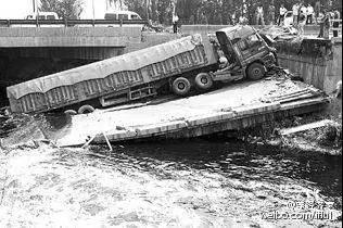 2012年哈爾濱的:裝滿石灰,三打一,估計400噸,干翻一座新橋(司機們要不要這么笨,扎堆兒送死...)