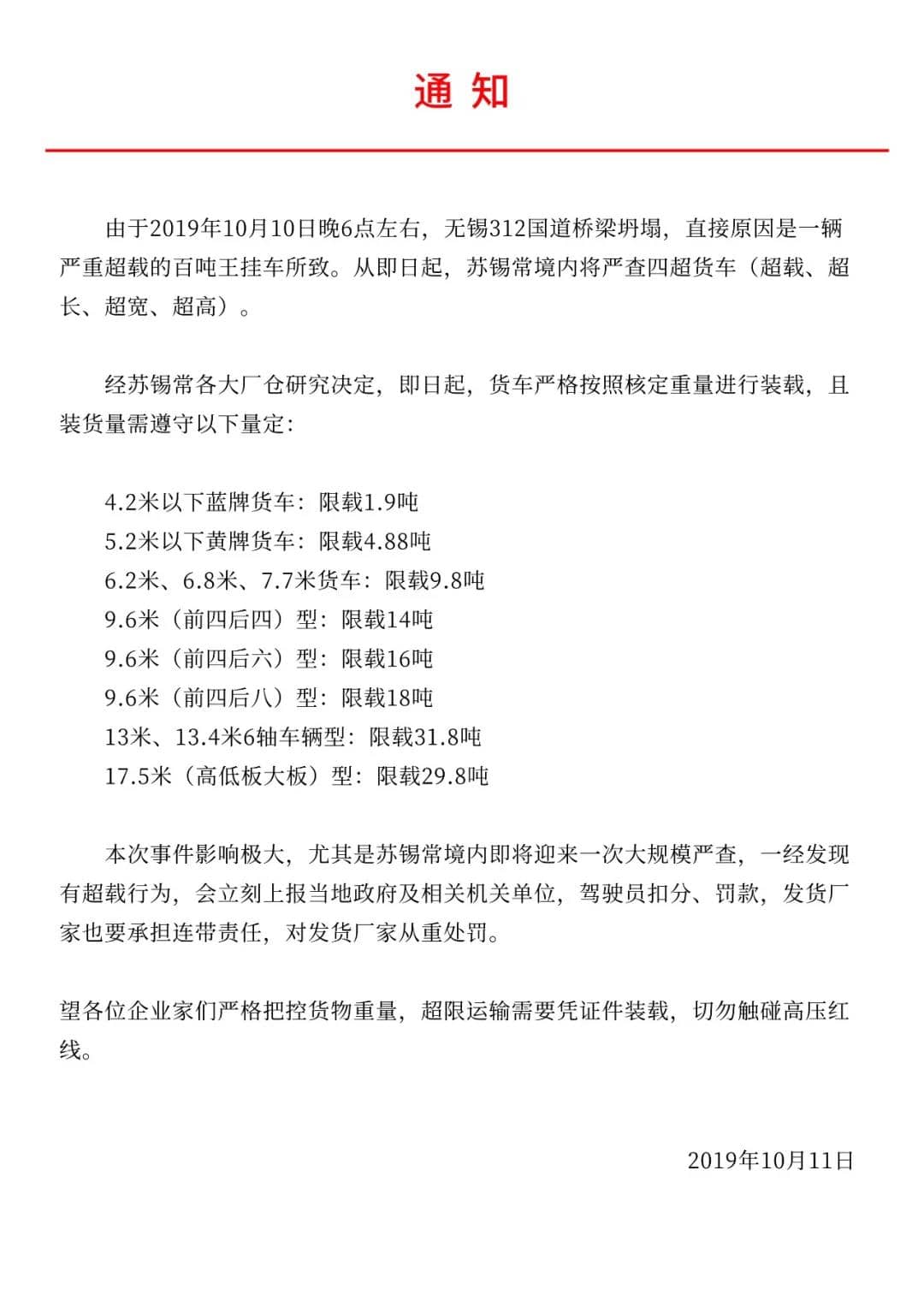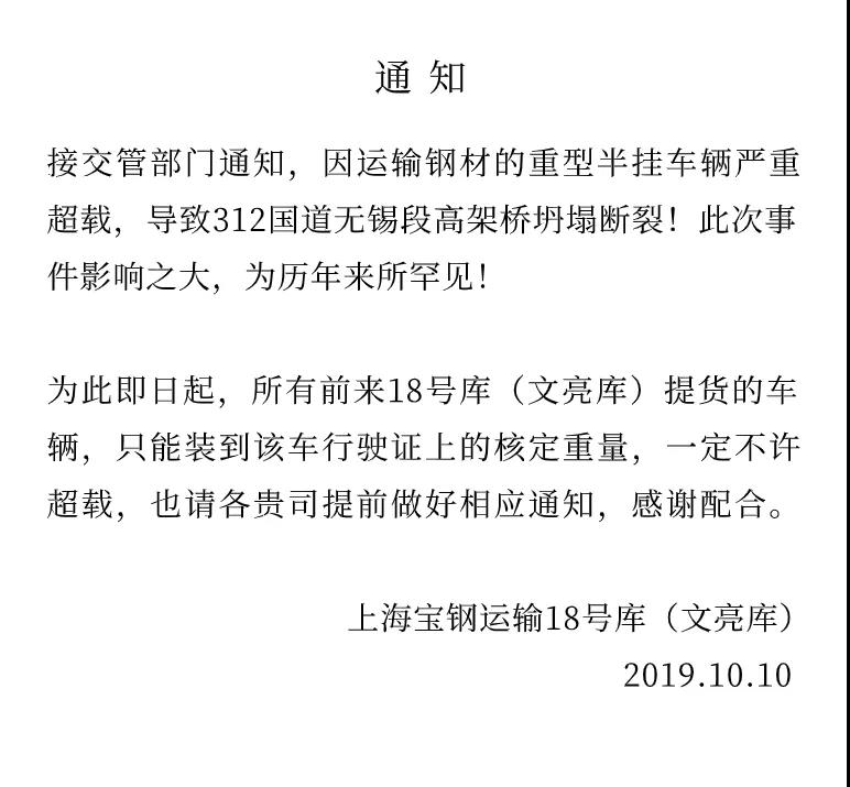 10月10日事件發生后,一經報道瞬間引起軒然大波,江浙滬等鄰近地區的運輸公司和配貨站紛紛接到交管部門通知,要求嚴格按照行駛證上的核定重量裝載貨物。