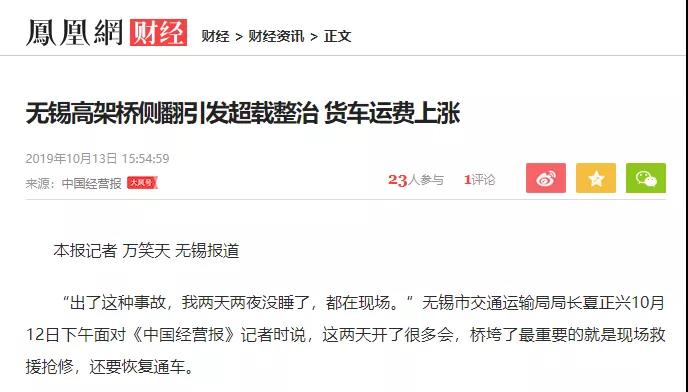鳳凰網:無錫事故發生后,貨車運費上漲▼