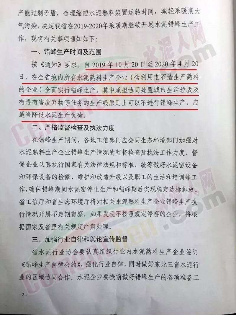 日前,黑龍江工信廳聯合生態環境廳聯合發布《關于做好黑龍江省2019-2020年采暖期水泥錯峰生產工作的通知》稱:按照工信部、環境部關于進一步做好水泥錯峰生產的通知要求,為進一步貫徹落實相關政府文件要求化解黑龍江省水泥行業產能過剩矛盾,合理縮短水泥熟料裝置運轉時間,減輕采暖期大氣污染,決定黑龍江省2019-2020年采暖期繼續開展水泥錯峰生產工業。錯峰生產時間及范圍:2019年10月20日至2020年4月20日在黑龍江全省所有水泥熟料生產企業(含利用電石渣生產熟料的企業)全面實行錯峰生產,其中承擔協同處置城市生活垃圾及有害廢棄物等任務的生產線上可以不進行錯峰生產,應適當降低水泥生產負荷。通知原文如下: