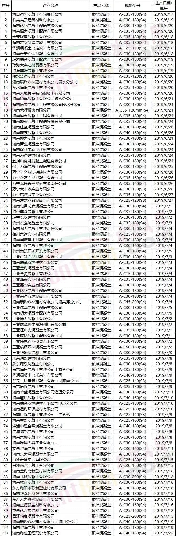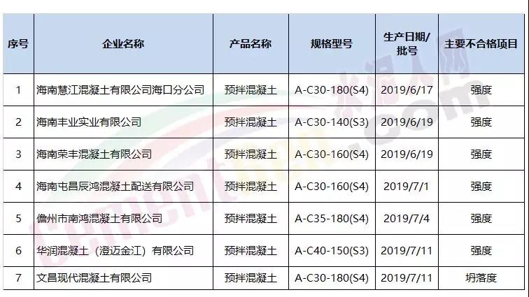 水泥人網消息:2019年6月17日至10月10日,海南省市場監督管理局組織對全省預拌混凝土產品進行了省級監督抽查。
