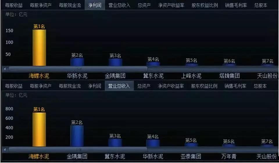 從利潤角度講,海螺水泥在行業中絕對處于龍頭地位。是一位全能選手,在營業規模上位于中國建材之后,但是可以收割國內的上市公司近一半的利潤,這也從側面說明該公司的盈利能力的強大,沒有一家能與之抗衡。從營收角度觀察,海螺行業第一。就是將老二金隅與老三冀東捆在一塊,才勉強夠得上海螺的規模。