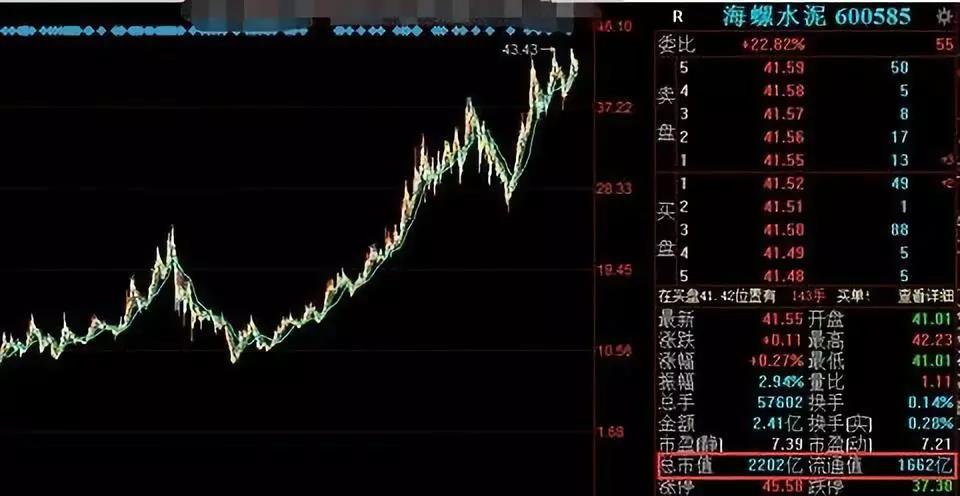 海螺水泥自2002年3月20日上市至今,復權后的股價達到了歷史新高。A股其主板市值也從2002年3月20日的73.16億增長到了2019年9月30日的2202億,17年的時間主板市值增長了30倍。如果您在2002年3月20日買入10萬元的海螺水泥股票,現在的價值已經是300萬元,年收益率非常驚人!