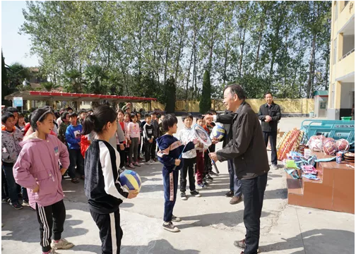 據水泥人網了解,10月16日上午,海螺集團扶貧工作隊隊長花家興同志帶領全體隊員到江老家小學及其下屬的江土樓教學點,向兩所學校捐贈了籃球、排球、足球、羽毛球拍、乒乓球拍、羽毛球、乒乓球、象棋、圍棋、跳棋、五子棋、呼啦圈、跳繩、毽子等文體用品。