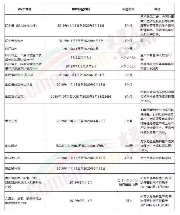 昨日(25日)山東省工信廳發布《關于組織實施2019-2020年度重點行業秋冬季差異化錯峰生產的通知》文件要求所屬區域內重點行業企業從2019年11月15日至2020年3月15日實施錯峰生產。同時表示支持山東省水泥行業協會根據國家工信部關于水泥錯峰生產有關通知要求,結合行業情況制定本行業錯峰生產具體實施方案。
