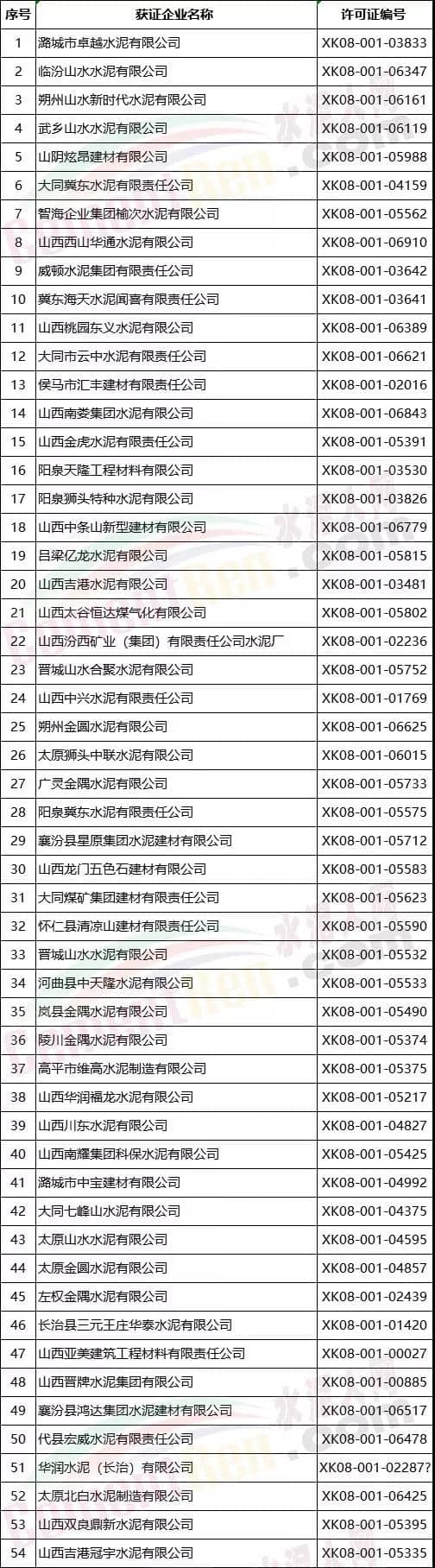 2018年已審核通過并真正實施的山東泉興水泥有限公司、華沃(棗莊)水泥有限公司、棗莊市沃豐水泥有限公司、山東聯合王晁水泥有限公司、滕州市東郭水泥有限公司