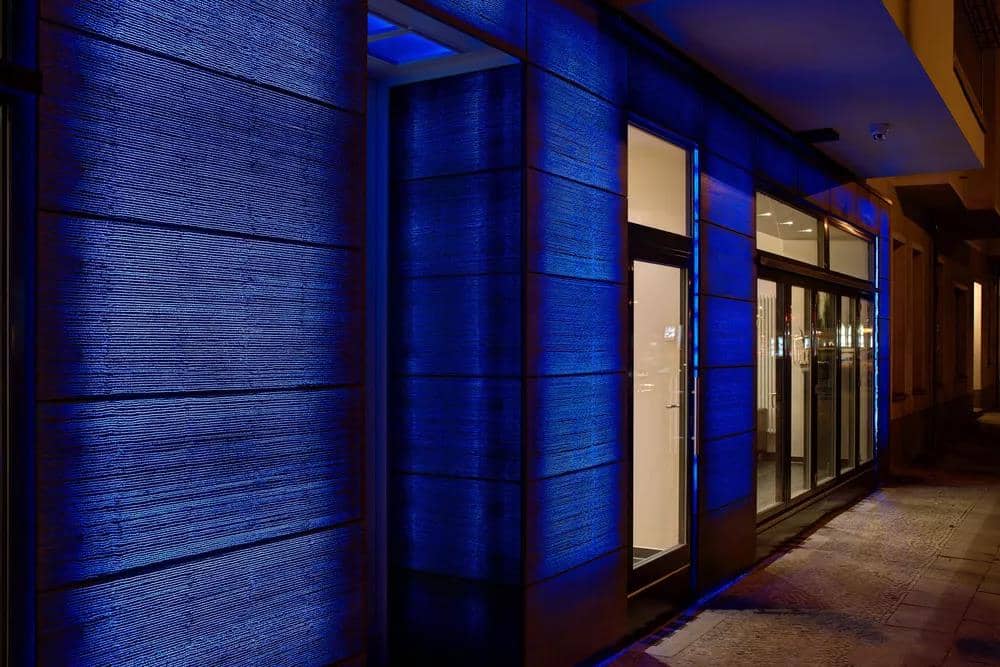 什么是透光混凝土匈牙利建筑師發明了這種可透光的混凝土,利用光傳導原理,使玻璃纖維不只被應用在通訊技術,也能是建筑材料的一環。透光混泥土內含的光纖就是造成這奇特現象的主角,這種可透光的混凝土由大量的光學纖維和精致混凝土組合而成。這種混凝土通常做成預制磚或墻板的形式,離這種混凝土最近的物體可在墻板上顯示出陰影。這種混凝土中光學纖維的含量為4%,而混凝土能夠透光的原因是混凝土兩個平面之間的纖維是以矩陣的方式平行放置的。另外,承重結構也能采用這種混凝土,因為這種玻璃纖維對于混凝土強度沒有任何的負面影響。而這種透光混凝土具有不同的尺寸和絕熱作用,并能做成不同的紋理和色彩。
